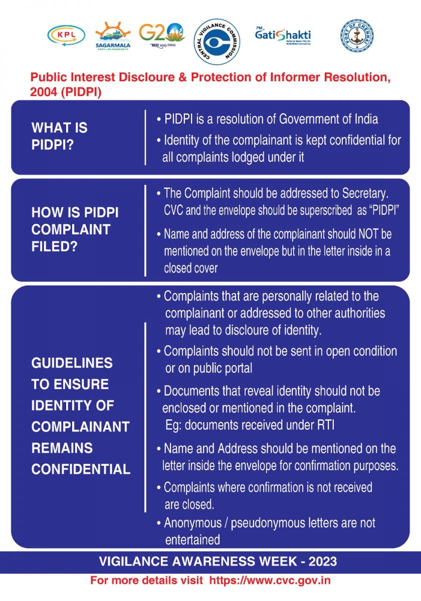 For your convenience we have designed a "Online Complaint Portal external linkExternal Link:This will open in new window.", to help you lodge any Vigilance related complaints. You can choose to send a complaint either by E-mail or post also. The letter cover should be super scribed with: "Confidential - To be opened by the addressee only," and sent to :